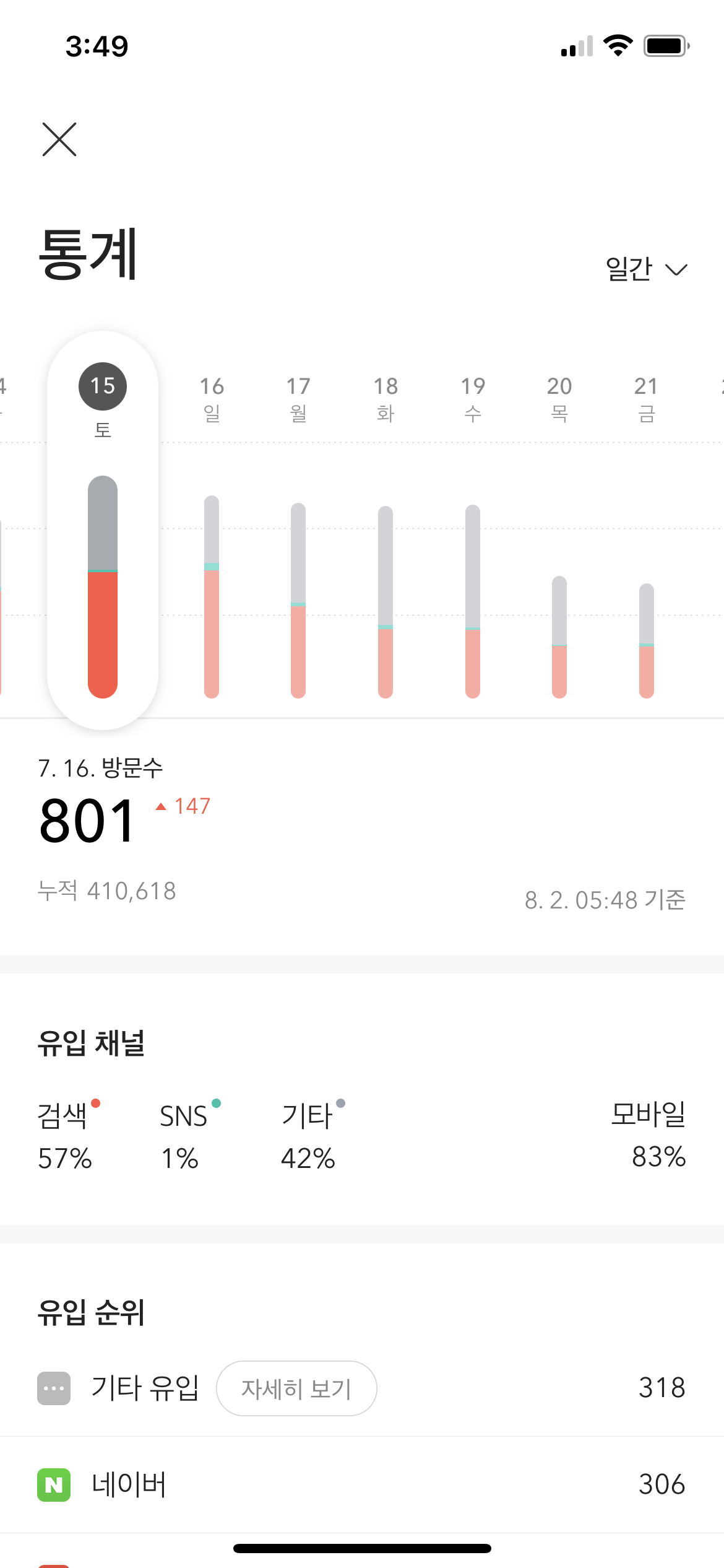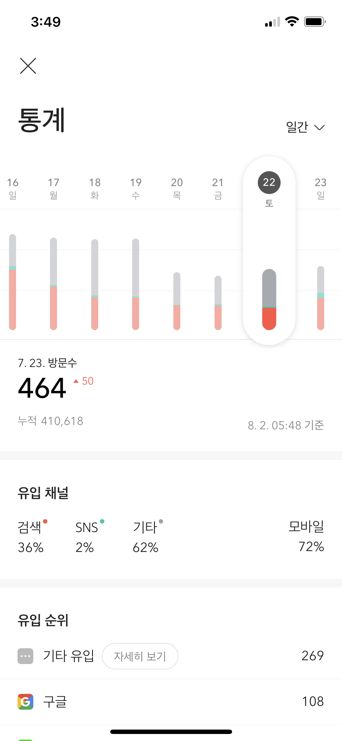 요 며칠 투데이 숫자를 떨어트린 핵심원인인 모바일 사용 편의성 문제, 그 중에서 클릭할 수 있는 요소가 서로 너무 가까움을 드디어 해결했습니다.