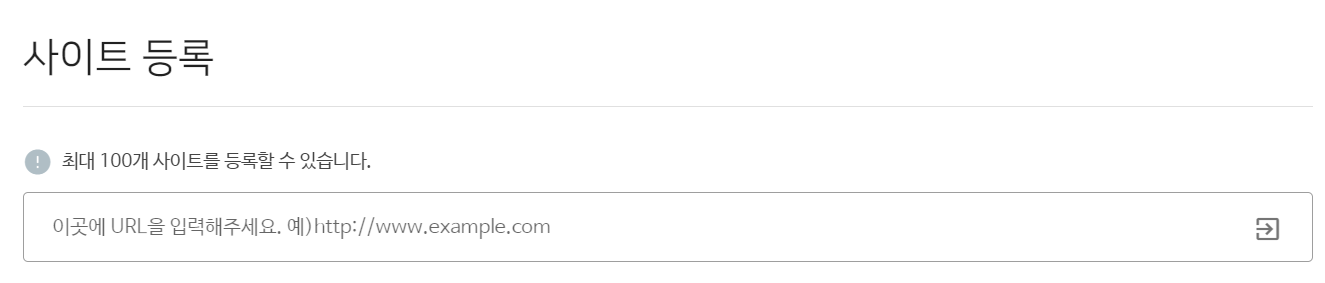 사이트 등록 란에 블로그 주소 입력을 해줍니다. 블로그가 여러개있으신 분들은 여러개 입력하셔도 무방합니다.