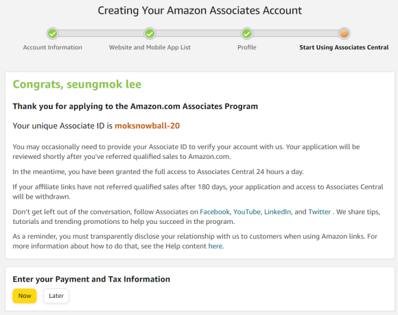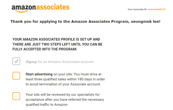 이렇게 아마존 어소시에이트 등록은 끝이납니다.