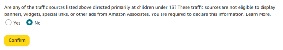저는 없으니 No를 누르고 컨펌을 해줍니다. 이런 정보는 나중에 아마존에서 승인날때 확인하니 솔직하게 하셔야합니다.