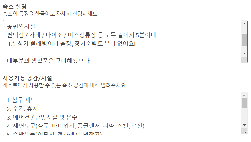 숙소 정보를 적어야 게스트가 참고할 사항이 많아지고