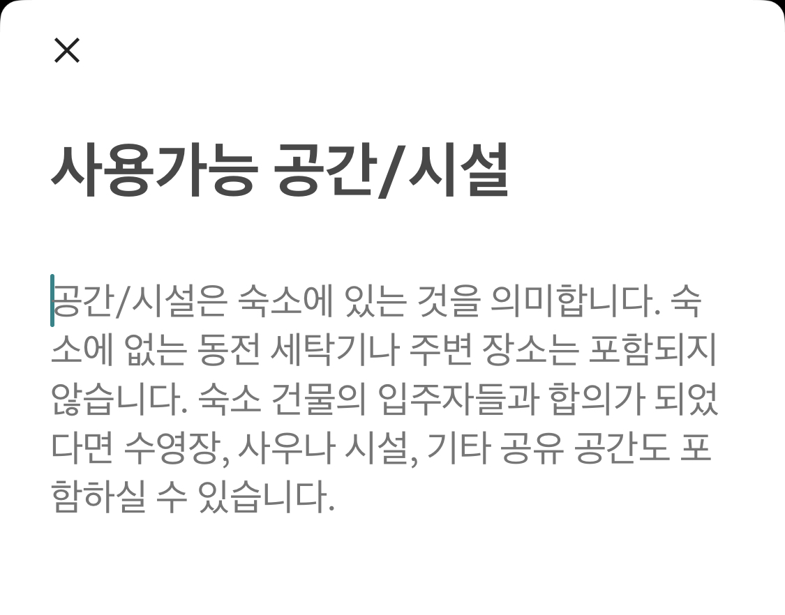사용가능한 공간에는 숙소에 포함된 것들을 적어야한다