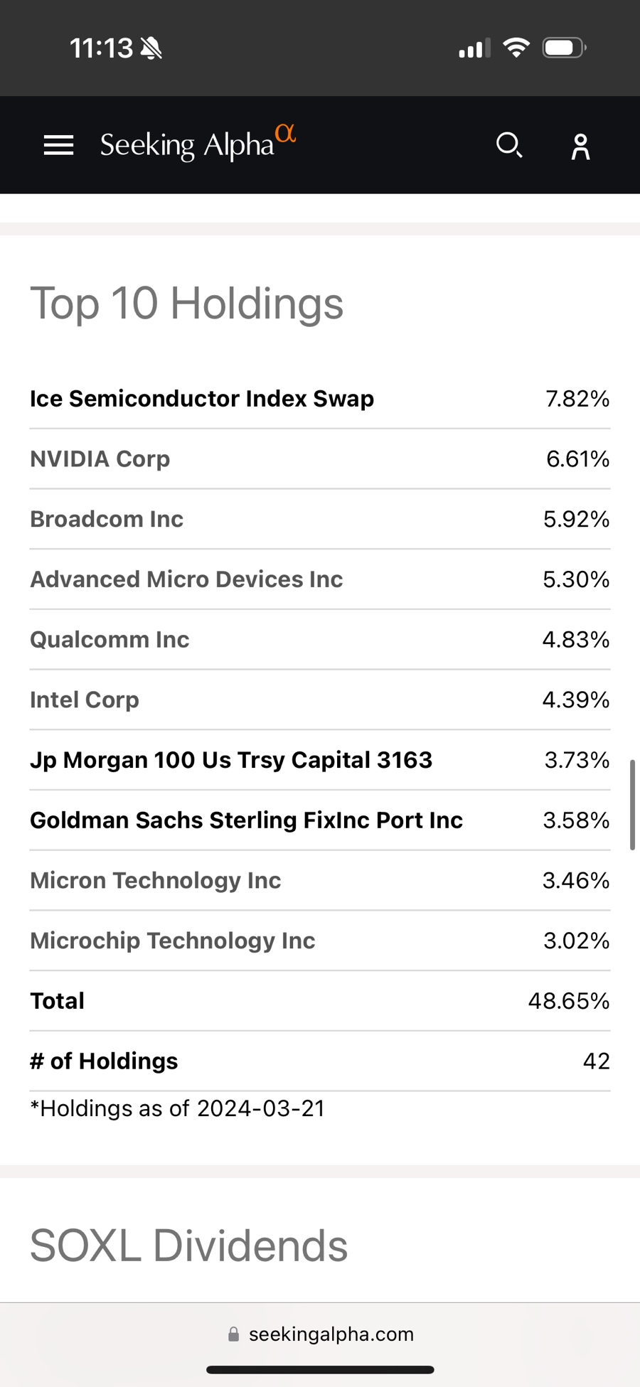 SOXL의 보유종목은 찾는 곳 마다 다르다. 당연히 비중조절을 하는게 ETF긴 하지만, 대략적으로만 참고하시고 비중을 보시면 되겠다.