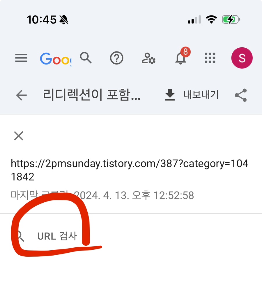 5. 'URL검사' 버튼을 눌러줍니다.