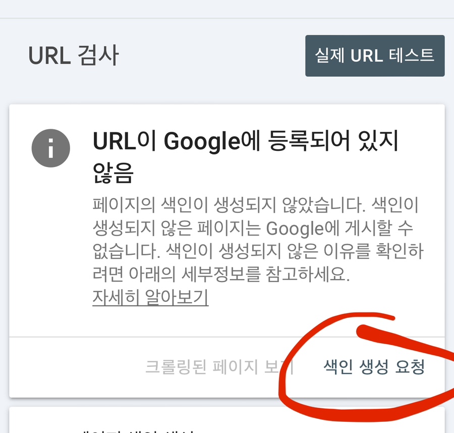 URL검사에서 '색인 생성 요청' 을 누르게되면