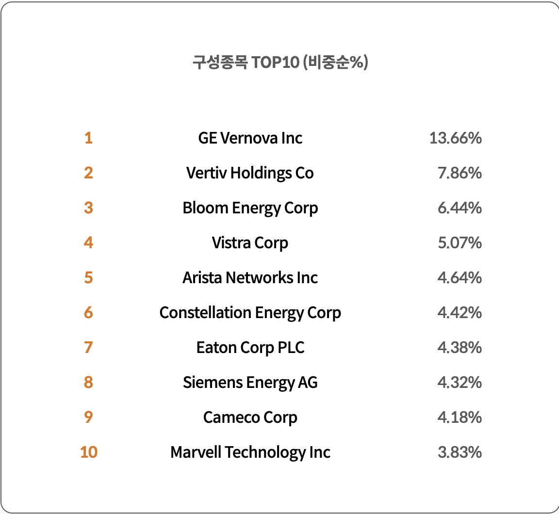 AI인프라 관련 주가가 많이 올랐습니다. 특히 GE vernova 놓친게 한이되는 주식입니다. 아무튼 이 TIGER 글로벌AI인프라액티브에서 제가 꼽은 세가지 가장 매력적인 주식을 소개해드리자면,