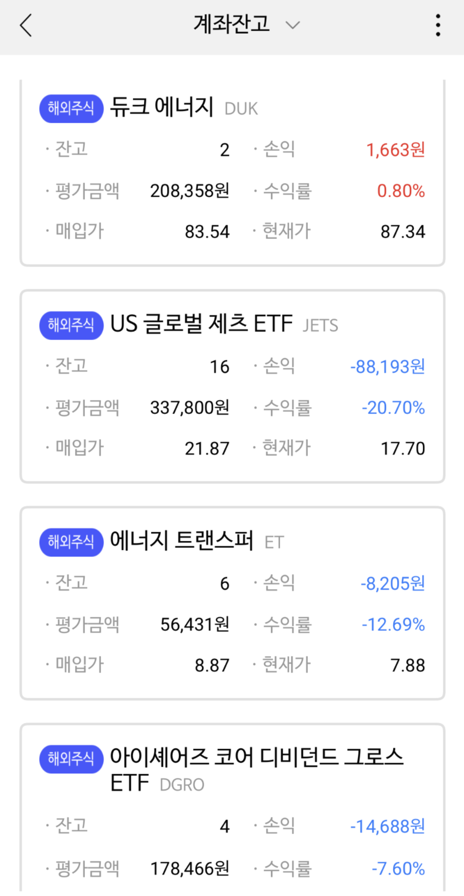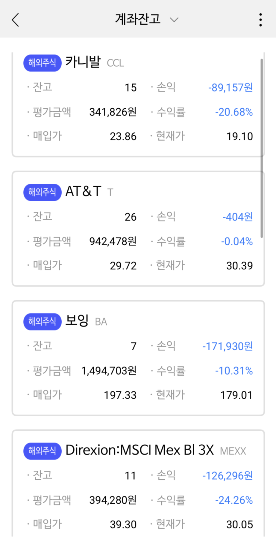 미국주식으로 현재는 딱 그만큼 손해인데