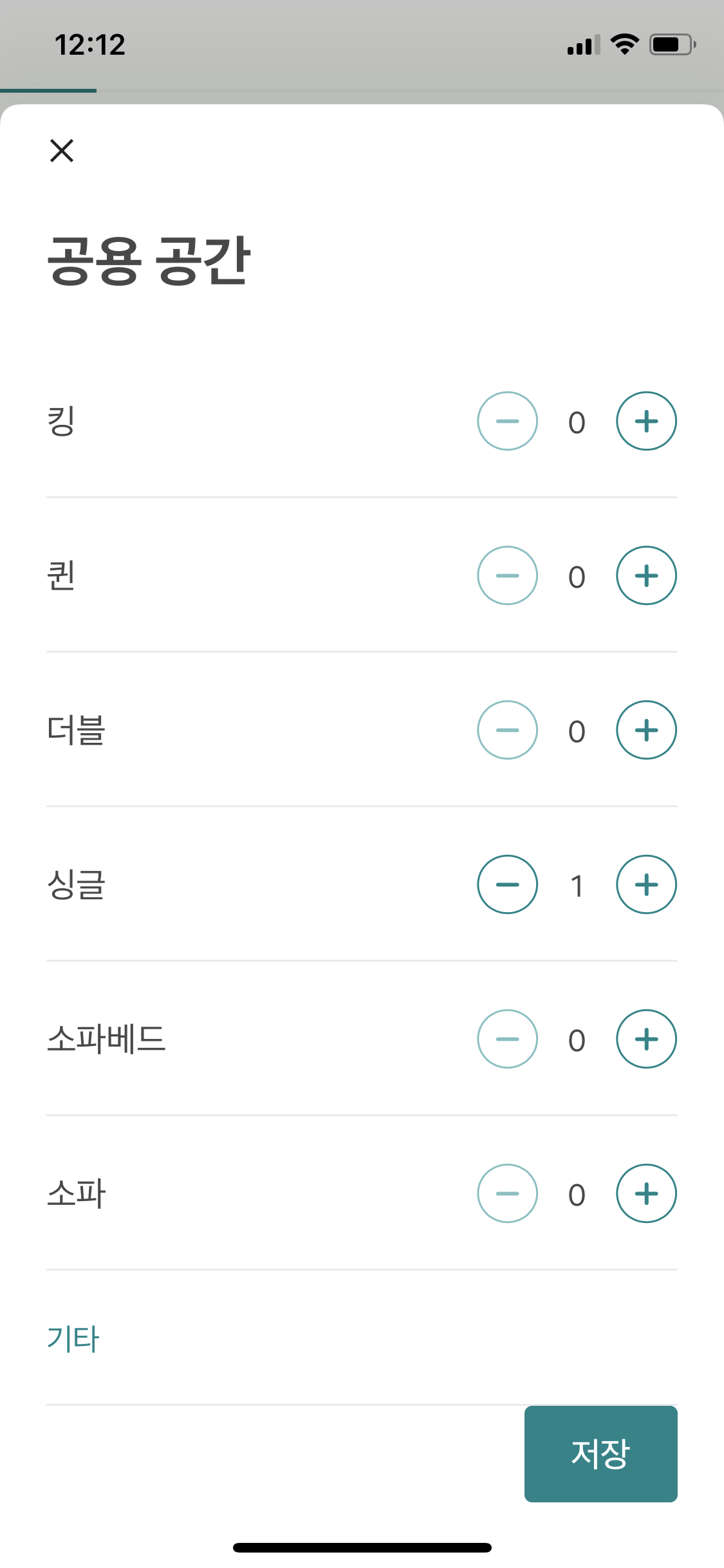 공용공간 / 욕실 수 / 편의시설을 설정해주세요