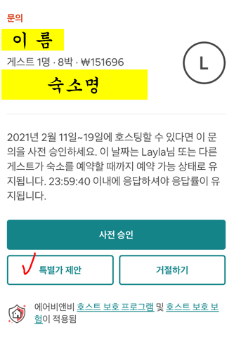 일반적으로 게스트가 호스트에게 예약 요청을하면 위 화면처럼