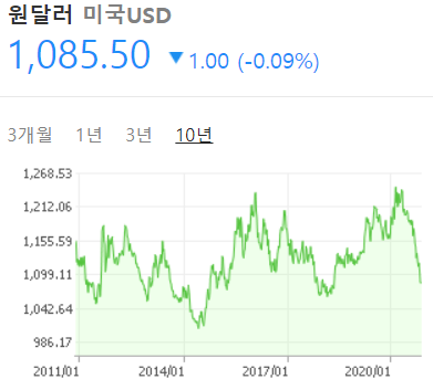 그래도 제가 투자적기라 생각한 이유는 원화가치가 지금 엄청 높기때문입니다