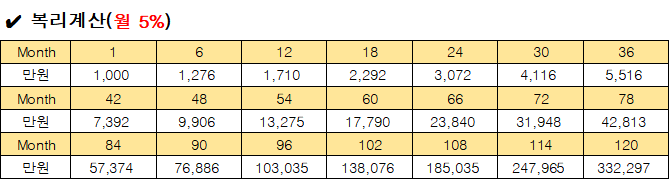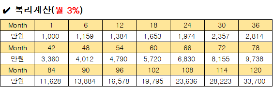 시드머니 별 복리계산 표