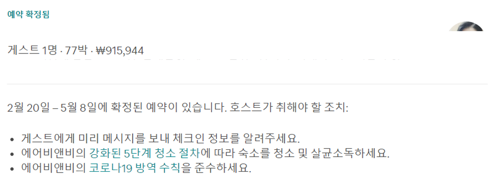 한달간 숙박이 예정되어있던 게스트분이 있습니다