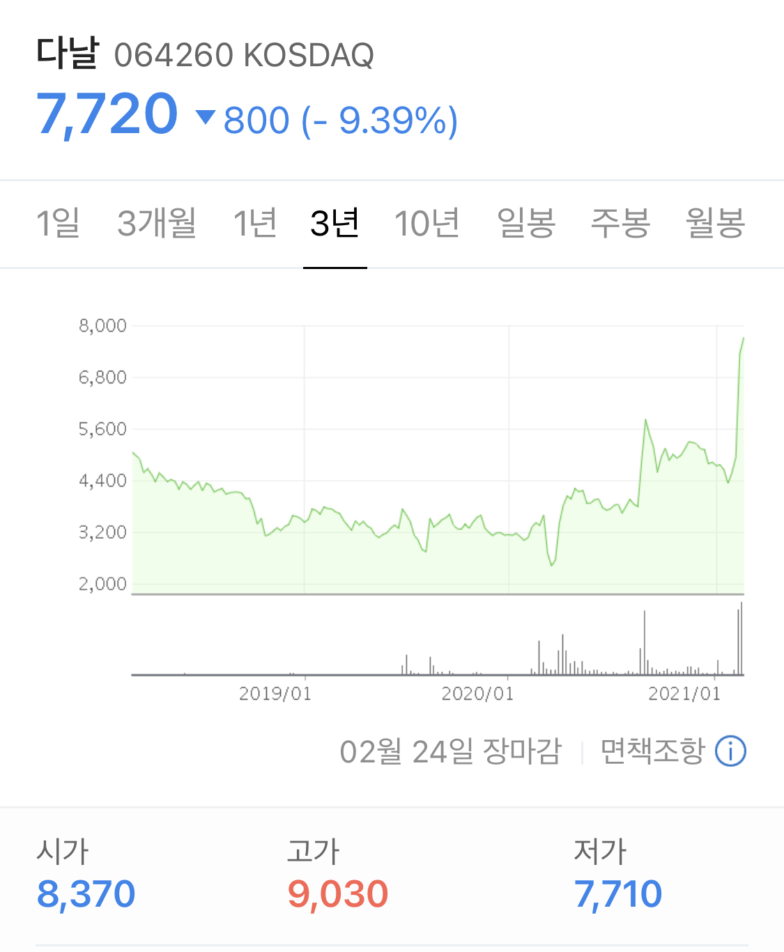 다날의 주가