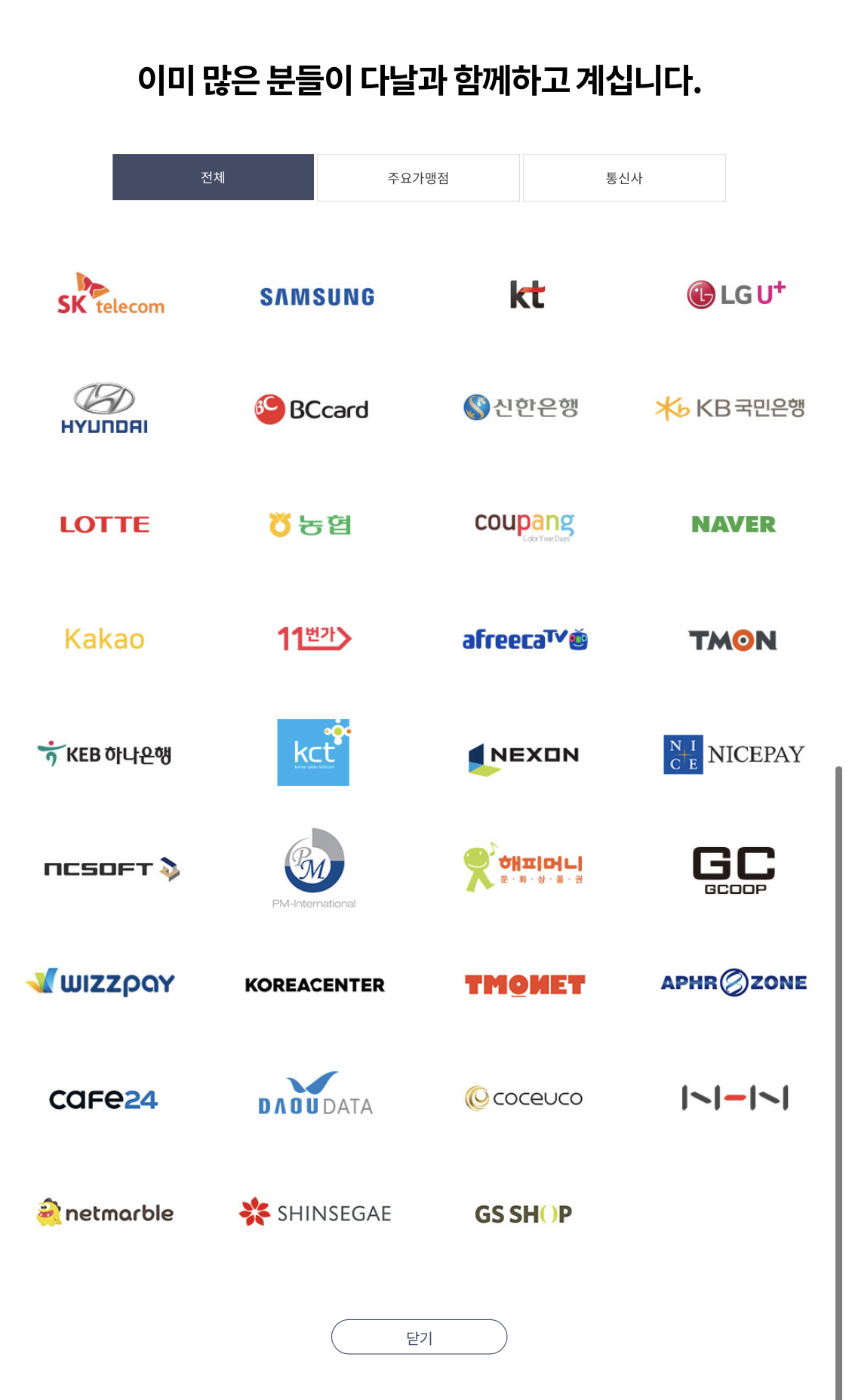 다날은 이미 많은 고객들을 보유하고 있습니다.