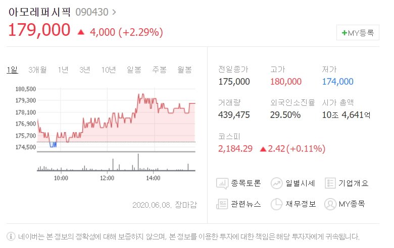 이전에 왜 아모레퍼시픽 주가가 제일 비쌌는지 이해가 되지 않았는데