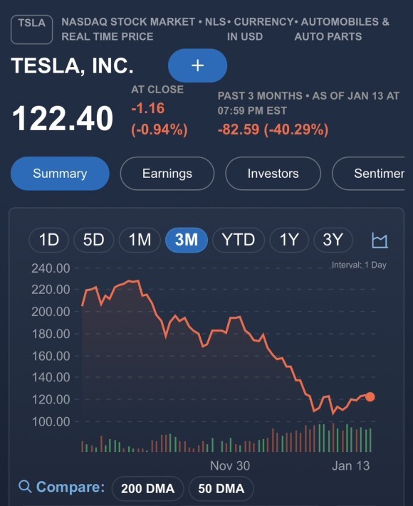 테슬라 고유의 문제라기보다는 일반적으로 금리(interest rates)가 오를때는 당연히 기업가치가 낮아집니다. 이유는 투자심리 위축으로 당연하게 전세계적으로 낮아지는건 어쩔 수 없는 거죠